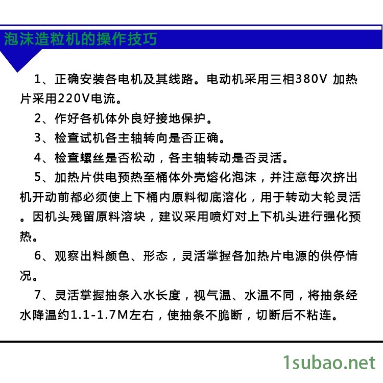 泡沫造粒机的特点是双螺杆,这是泡沫再生造粒技术,全套的泡沫造粒机集合破碎、除杂、输送、上料、拉丝、切粒为一体,操作简便,性能稳定,废旧泡沫直接破碎后通过管道送料进入主机浓缩自动牵引切成颗粒制品,整个生产过程采用自动控温系统,颗粒颜色几乎无改变,不老化,制造出的产品质量好,销售价格高,整套泡沫造粒机仅需1~2个人即可操作。 ![]() ![]() ![]() |
