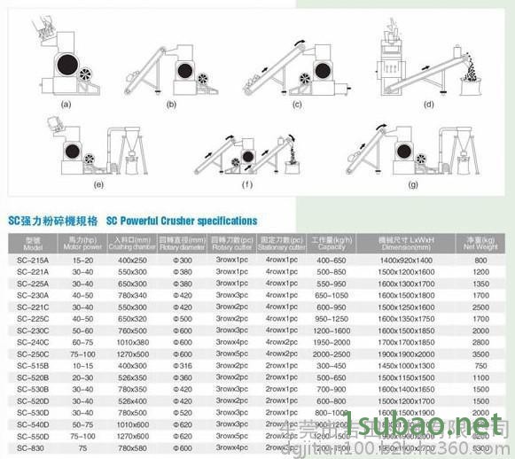 2、机型4排固定刀及水冷却循环系统设计,产量高,粉碎能力强,特别适合粉碎加纤尼龙、胶头、大型胶件、管材、板材、机壳、注塑胶头、鞋楦、海绵、布匹等材料。
