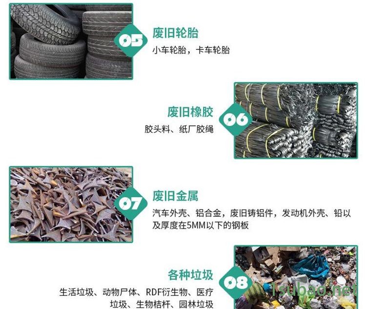 | 适用物料 | 垃圾、金属、塑料、橡胶、木材等 |