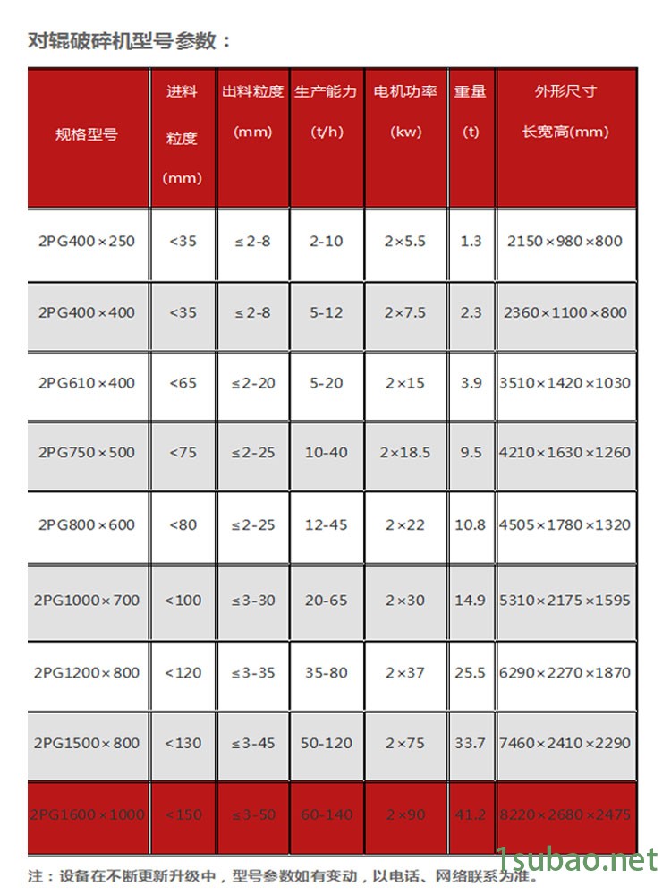 对辊破碎机型号参数: