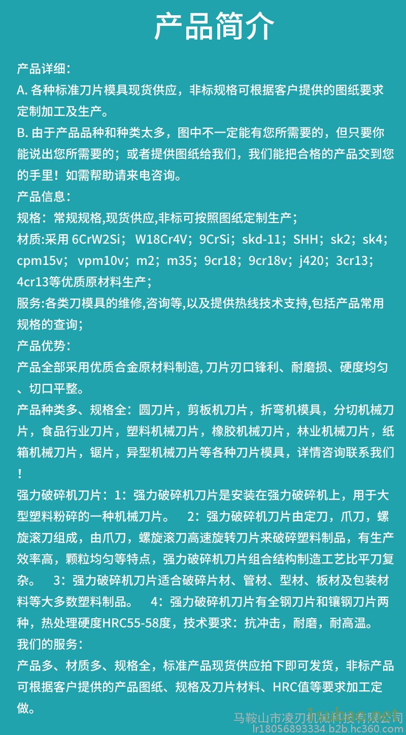 撕碎机刀片,粉碎机刀片,机床导轨,圆刀片,折弯机模具,食品机械刀片,油墨刮刀,分条机刀片,纸箱刀片,各类机械刀