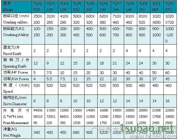 TLP片刀型破碎机详细参数表: