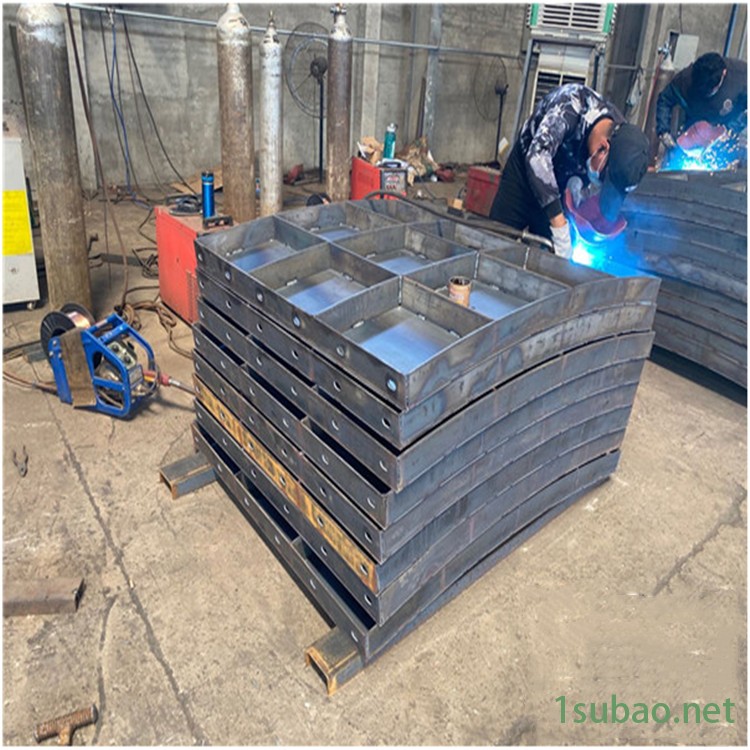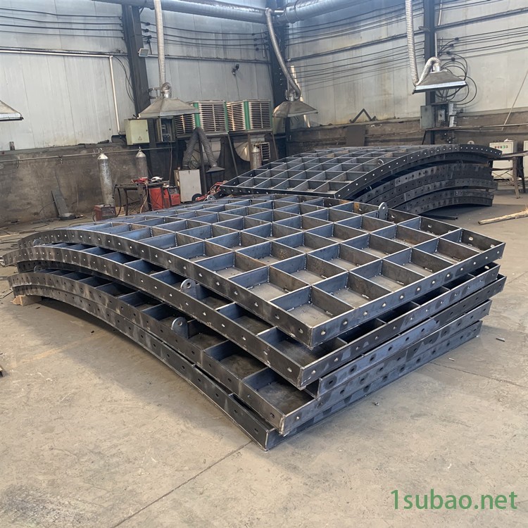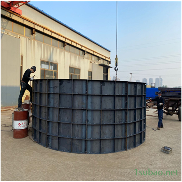 储罐基础模板使用优质钢板制作,厚度一般是5mm,可以根据施工的具体要求进行加厚,因为不同的施工情况所需要的储罐基础模板的大小是不同的,一般来说是60m或者是80m,这是储罐基座的尺寸大小,而风电基础,桥梁底座的模板直径就不一样了,还会更小。钢板的韧性比较强,可以根据要求制作出不同大小的储罐基础模板,并且还分为了面板和筋板,主要是起到固定原料的作用,而筋板则是增强模板的抗压能力的作用,让模板不会在进行浇灌时出现变形的情况,从而导致无法正常使用。并且钢板的刚性以及耐磨性都是不错的,可以长时间的重复使用,不会发生损坏,这样就意味着模板可以适应高强度的生产,并且生产效率也是比较高的,一般来说浇灌之后进行自然风干,风干两天就可以完成制造了,将模板内腔进行简单的清理,然后就能进行下一次的制作。在使用时需要进行现场浇筑,因为模板是很多小的部分的,所以在运输和搬运的过程中就会很方便,三四个人就可以完成搬运和安装。