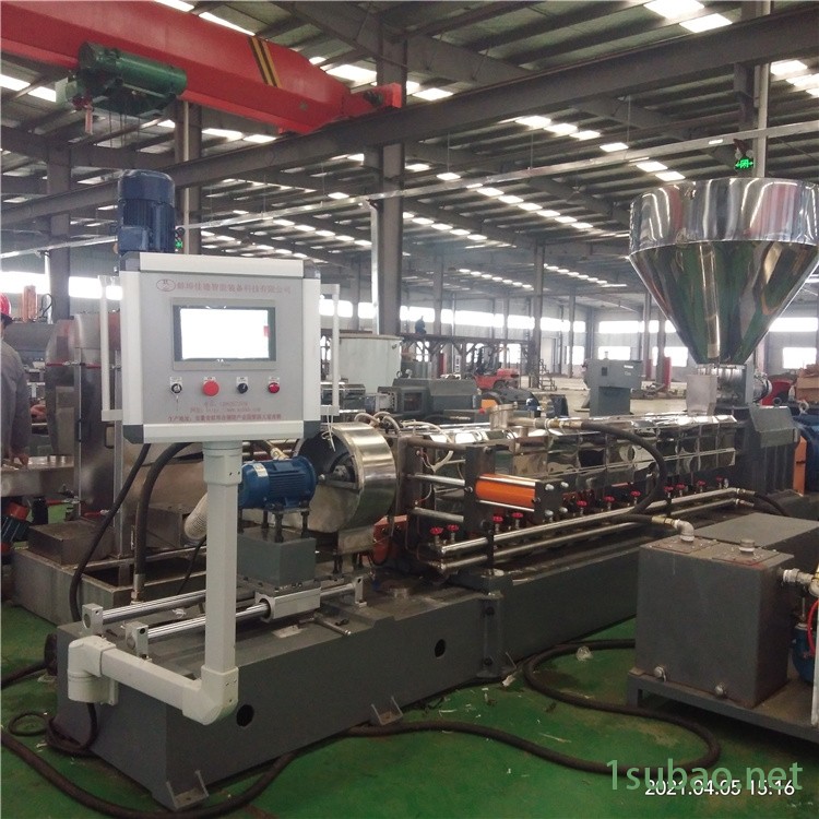 PLA降解塑料造粒机选用JS双螺杆系列,产能在40-600千克/小时;