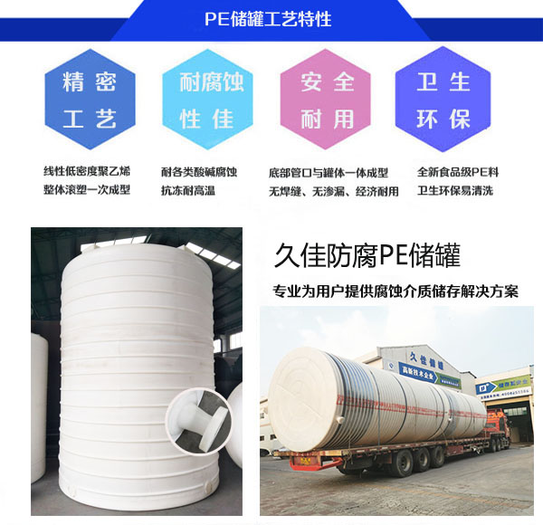 减水剂储罐厂家推荐:东莞市久佳防腐设备有限公司!专注制造和销售塑料储罐,采用韩国全新进口线性低密度聚乙烯,国外成熟的滚塑旋转工艺成型技术:管口滚塑一次成型生产,是全国知名的减水剂储罐生产厂家。
