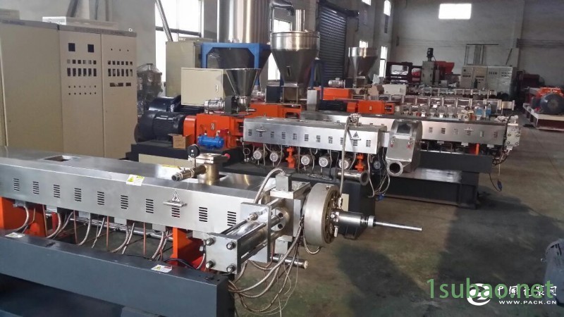 低烟无卤电缆料造粒机 双阶式造粒机基本结构形式:1.75L密炼机 2.提升机 3.F双喂料机 4.双螺杆主机 5.单螺杆主机 6.风冷模面热切机头 7.旋风分离器 8.风冷加长振动筛 9.料仓 特点:将双螺杆高速,强混炼与单螺杆低速,低温,弱剪切特性相结合,扬长避短,工艺自动化程度高,流水线作业,分散效果优异,产量高,工况清洁,是当今热敏性,剪敏性物料高效配混改性的选机型。适用于:PVC电缆料,鞋底料,透明瓶料,医用料,低烟无卤或无卤阻燃电缆料,EVA屏蔽料,PE/EVA炭黑母粒。
