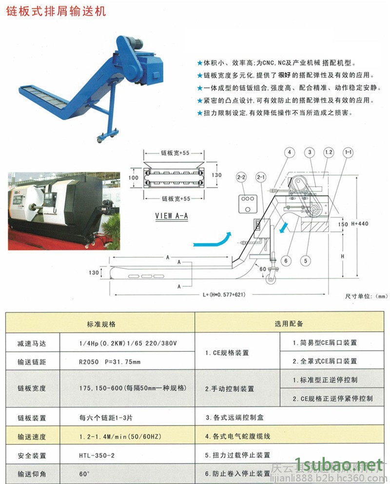 链板排屑机主要用于收集和输送各种卷状、团状、块状切屑,以及磁性排屑器不能解决的铜屑、铝屑、不锈钢屑、碳块、尼龙等材料,广泛应用于各类数控机床加工中心组合机床和柔性生产线,也可作为冲压,冷墩机床小型零件的输送装置,应用到卫生,食品生产输送上起到改善操作环境减轻劳动强度,提高整机自动化程度的作用,链板可根据用户要求制做不锈钢及冷轧板两种。