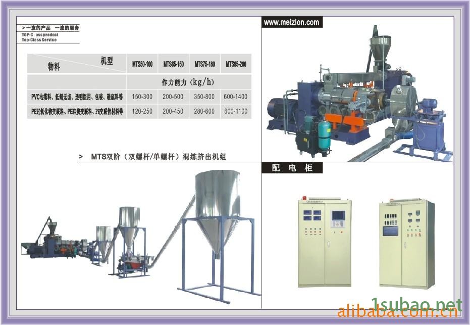 本公司开发研制出新型的高扭矩、高转速、高产量MM系列同向平行双螺杆挤出机、ME系列双阶挤出机和MD系列单螺杆挤出机对各类塑料及橡胶等高分子材料的均质、塑化、着色、共混、填充、增强及回收等作业具有更加广泛的应用。