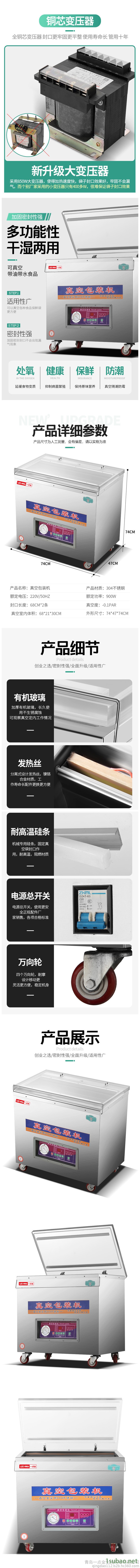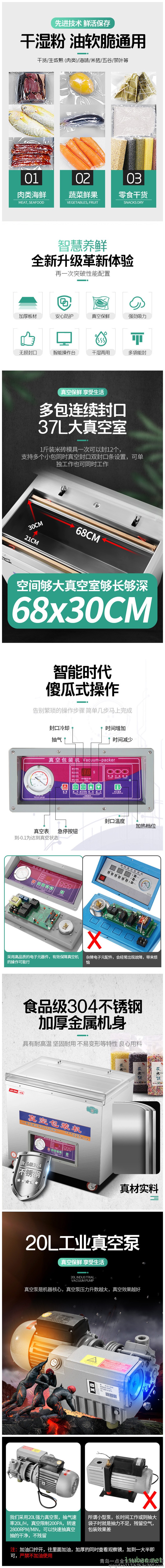 食品级304不锈钢加厚金属机身,37L大真空室多包连续封口