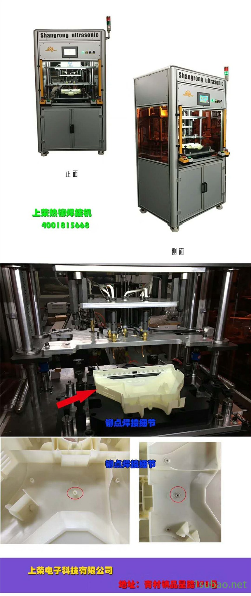 压头结构水平可调, 压头行程可调,适用于不同高度的塑胶柱子热熔接,调试方便。