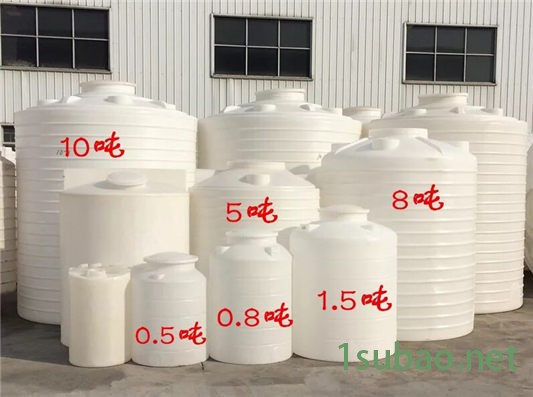 塑料储水罐,滚塑一体成型技术而成,其形状接近矿水泉瓶子,上下有四个供加装接头的平台提供使用者在实地使用时根据自己的需要加装法兰,PVC接头等; 和矿泉水瓶底部一样,围绕瓶底中心的周围有旋转排列凹痕,主要作用为增加桶身强度,防止运输途中共振,防止底部被水压导致变形或破裂,而且装溶液更有稳定性,因此,储罐放置处,请清除尖锐的物品或石块,10吨及以上储罐必须在底部铺细黄沙垫衬底部。