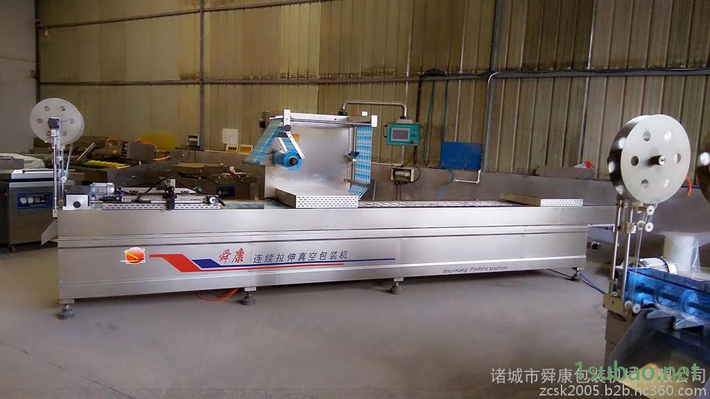 | 适用范围:适用于各种食品、低温肉制品、海产品、酱菜、冷却肉、医药产品、五金元件、医疗器械等的真空充气、 贴体包装等。 设备配置:进口PLC控制、三菱变频走速,原装德国进口真空泵、进口传动链条,光电跟踪,可根据要求配置自动打 码系统和充气设置。