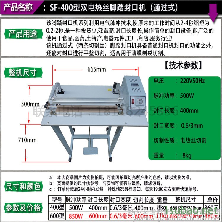 科发隆SF-400通过式脚踏塑料袋封口机 封口机 收缩膜封切机 脚踩封口机 毛巾包装封口机