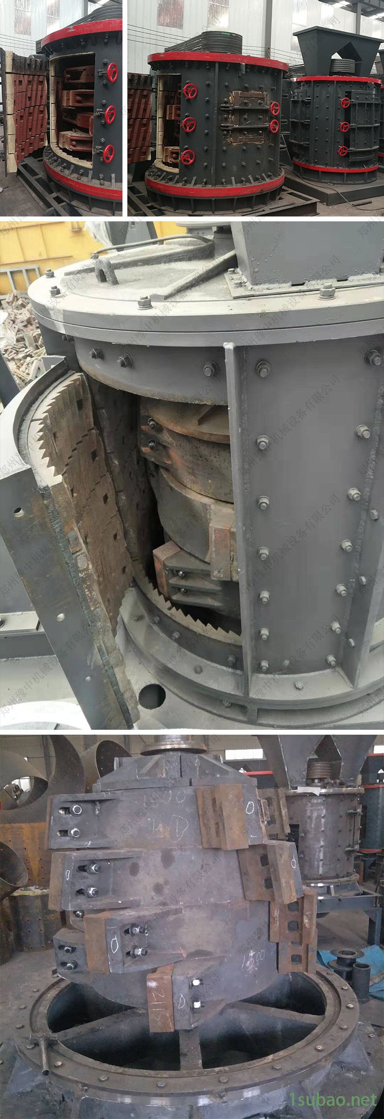 本设备磨损件材料采用复合抗磨材料,经过处理,针对目前市场上坚硬物料,尤其硬度达到68以上的如铁矿石,金矿石,钼矿,镍矿废钢渣,河卵石,花岗岩,玄武岩,金刚砂等硬物质达到中碎、细碎可调而设计。