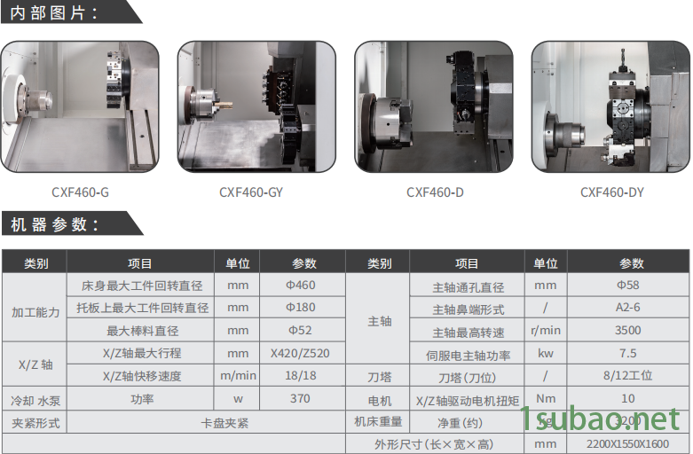 车铣复合加工机床技术参数: