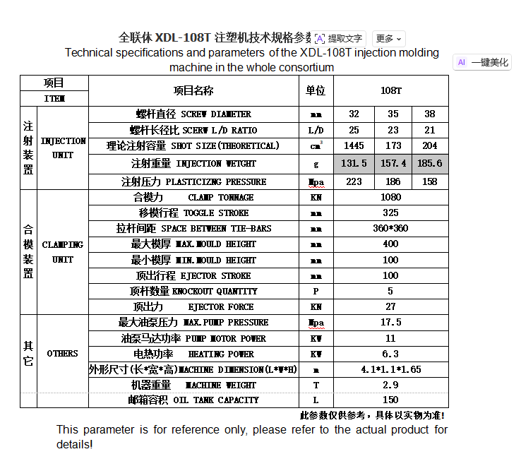 | 螺杆直径 | 32 35 38mm |