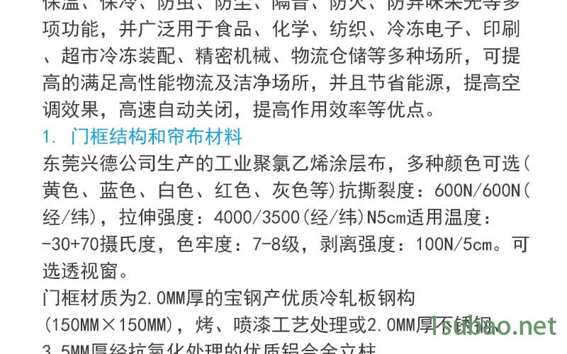 。目前好多旧冷库采用杉木门框(门樘)的外贴式冷库门,其做法有多种形式,如平开、推拉及电动等。而目前新建的冷库普遍采用不锈钢带防冻电加热的新型电动(手动)冷库门。新型冷库门采用高压灌注聚氨酯,保温隔热性能好。