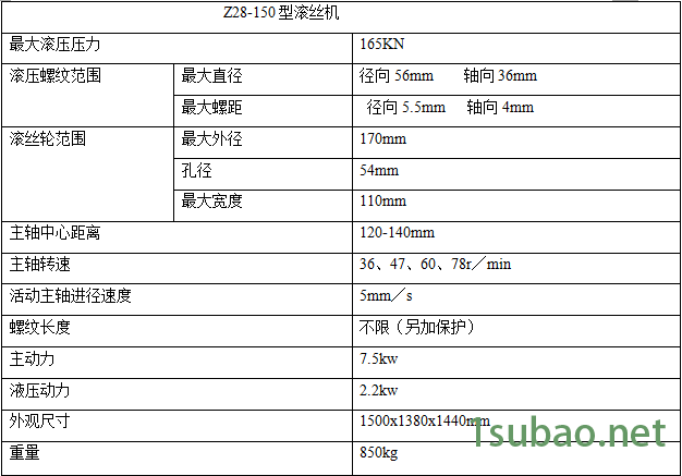 Z28-150型滚丝机设计结构合理坚固,配用主动力大、噪音小、故障率低、加工螺纹精度高,适用范围广,可滚压各种螺纹,包括普通螺纹、梯形螺纹以及模数螺纹,也可对工件进行成型、滚光、滚纹等滚压加工。产品通过万向轴传动,自动润滑系统,操作方便,并设有手动控制、脚踏控制和自动控制。生产效率高,劳动强力低,配以相应的滚丝轮可以加工多种多种型号的普通螺栓和各种异型螺栓。