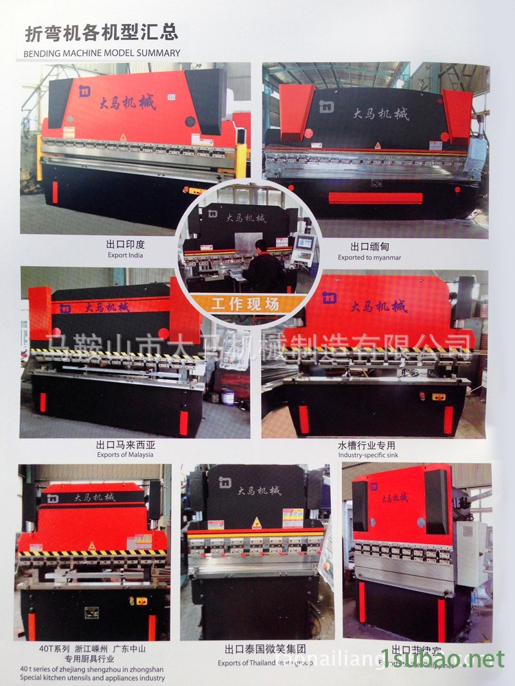 1, 采用液压下传动,具有安全性,操作性,可靠性。2, 采用刚性机械同步,滚动导轨,保持上,下工作台面平衡度。3, 上工作台配有斜锲式挠度补偿装置,提高加工精度。4, 上下模均采用整体淬火,上模形式为标准上模,下模采用双槽模,中间板采用快速夹紧装置。5, 后挡料脚带有刻度显示,调节方便,灵活,精度高。6, 液压装置的油路简化,无漏油,保养,点检方便。7, 采用脚踏开关,可任意控制下工作台,或做中间停止,使对线折弯等容易方便。8, 控制系统采用专业数控系统NC9或NC10,带有触摸式线控方向盘,电子手轮控制微调上下模口对线及后挡料微调。