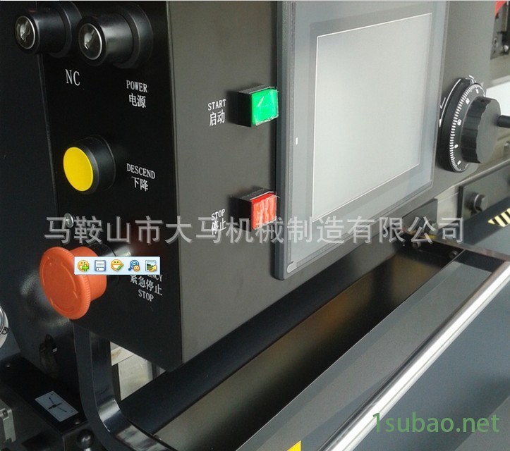 6、 电气系统二种选择:1) 采用日本三菱AC伺服。日本制造程序控制器2) NC9折弯机下动式触摸屏线控方向盘。专业数控系统,带电子手轮控制及产品编程