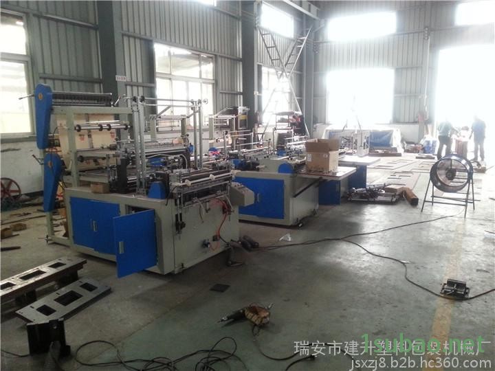 本机以HDPE、LDPE筒膜为原料可生产印刷、本色、背心袋,采用PLC控制、双伺服(步进)马达定长、液晶触摸屏实时显示,从送料、封底、 切断、冲口、自动输送一次性完成,自动化程度高,经济效益好。