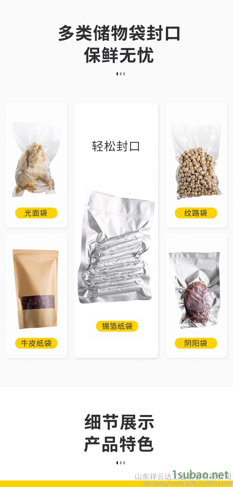 适用材料:各种塑料薄膜袋、复合膜袋、铝箔袋的真空包装。