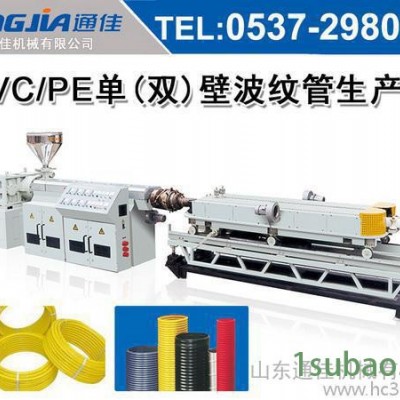 单壁波纹管生产线 (15753708068)是引进国外先进技术,结合本国实际国情,自行开发设计的新产品。主要以聚氯乙烯或聚乙烯为原料,生产单、双壁波纹管材,该管材因其独特的结构,具有质量轻、抗冲击性能好、耐腐蚀性强、耐寒耐热的优点,广泛用于通讯,、电线电缆的铺设、桥梁钢索护套,农业灌溉、城市排(给)水、地理渗透及建筑上下水领域。