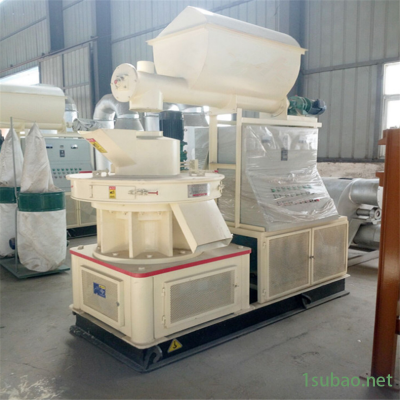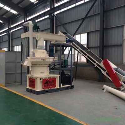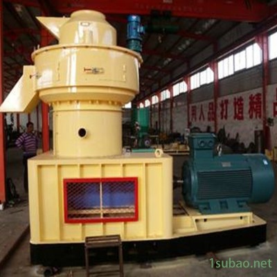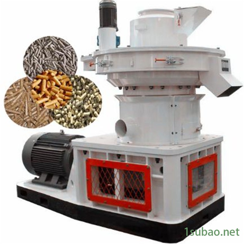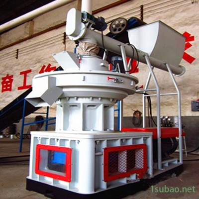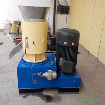 该设备以机械固有的运动为基础,电机(或柴油机)作动力,带动齿轮传递至主轴,在磨擦力的作用下使压辊自转,让压辊与压模之间产生相应的磨擦温度,使粉状物料通过塑化,蛋白脂受温变性,在压轮的挤压下从模孔中挤出,通过对切刀的调整可以得到需要的颗粒长度,再经甩料盘将制成的颗粒经出料口送出机外。