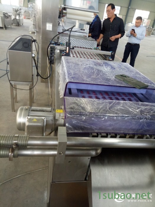 豆干全自动拉伸膜真空包装机420连续拉伸封口免运费,操作方便的控制系统,触摸屏操作,圆形显示设备运行和故障分析程序控制系统,便于设备的操作和控制!精确的地膜成型和绝对恒温牢固的密封!